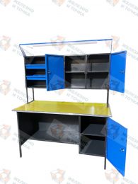 - съемного верхнего экрана, выполненного из стальной трубы квадратного сечения. Экран имеет три полки для инструментов и мелких деталей, а также навесной шкафчик с двумя полками, дверцами и замками. В верхней части экрана смонтирована лампа местного освещения (светильник с лампой дневного света);