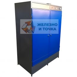 Предназначен для сушки одежды и обуви. Внутри шкафа ШСО-01 располагаются две подвесные сетчатые полки для сушки рукавиц, головных уборов и обуви, а также перекладина для вешалок. Для защиты нижнего отделения шкафа, с находящимся в нем электрооборудованием, под решетчатыми полками установлены съемные металлические поддоны. Конвекция теплого воздуха в рабочей части сушильного шкафа ШСО-01 осуществляется с помощью установленного вентилятора. В верхнюю обшивку шкафа ШСО-01 встроен фланец для подключения (при необходимости) к вытяжной вентиляционной системе помещения, в котором шкаф установлен. Шкаф ШСО-01 оборудован реле-регулятором с датчиком температуры, которые производят отключение электронагревателя при достижении в шкафу определенной температуры и поддерживают ее на заданном уровне. При заводской настройке регулятор выставлен на температуру 45°C. Габаритные размеры (мм)1220х620х1880 Размер рабочей части (мм)1200х600х1360 Полка (шт)2 Номинальная мощность нагревательных элементов (кВТ)2 Ток питающей сети Напряжение (В) Частота (Гц)переменный 220 50 Производительность вентилятора (м3/ч)100 Обороты двигателя вентилятора (об/мин)2650 Рекомендуемая температура внутри шкафане более 45°C Масса (кг)102