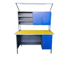 Столы электромонтажника СЭ-01 созданы специально для электромонтажных работ на предприятиях электротехнической промышленности. Столы электромонтажника СЭ-01 успешно протестированы на соответствие стандартам ГОСТ Р.Стол электромонтажника выдерживает высокие равномернораспределенные нагрузки, т. к. изготовлен из профильной трубы и представляет собой цельносварную конструкцию. Столешница стола электромонтажника имеет толщину 17 мм, изготавливается из общепромышленной древесно-стружечной плиты, обшитой лабораторным пластиком Labio или стеклотекстолитом, по периметру столешницы окантовка из алюминиевого уголка.Покрытие стола обладает отличными защитными свойствами, выдерживает комплексное воздействие агрессивных факторов окружающей промышленной атмосферы.Стол электромонтажника СЭ-01 имеет экран с тремя полками, тумбу, навесной шкафчик, сетевой фильтр с термореле защиты, светильник. Возможно оснащение стола дополнительным инструментом. Габариты (мм)1500х700х2000 Размер рабочей поверхности стола (мм)1500х700 Мах равномернораспределенная нагрузка на столешницу (кг)310 Ток питающей сети: Род Частота (Гц) Напряжение (В) Переменный 50 220 Суммарная мощность нагрузки на сетевой фильтр (Вт)2000 Масса (кг)98