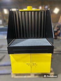 Корпус сварочно-зачистного стола изготавливается из листовой стали и окрашивается высококачественной порошковой краской, которая обеспечивает высокую защиту корпуса от воздействий окружающей среды. В нижней части стола находится тумба для инструмента, с закрываемыми на ключ дверцами. Сверху установлен короб с панелью равномерного всасывания и боковыми экранами. На козырьке короба установлен светильник (яркая люминесцентная лампа). Между столом и коробом находится заслонка, управляемая рукояткой. На столешнице установлена стальная сварная решетка. Решетка и корпус стола соединены кабелем заземления. Под решеткой расположен поддон. На боковых стенках короба имеются отверстия диаметром 250 мм для подключения к вытяжной системе. Стол комплектуется верхним патрубком и заглушкой, боковым патрубком и заглушкой и регулируемыми опорами (ножки регулируются по высоте). Боковые экраны имеют упоры и фиксаторы. Стол оснащен болтом заземления и кабельной розеткой для подключения массы сварочного аппарата.