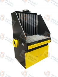 Корпус сварочно-зачистного стола изготавливается из листовой стали и окрашивается высококачественной порошковой краской, которая обеспечивает высокую защиту корпуса от воздействий окружающей среды. В нижней части стола находится тумба для инструмента, с закрываемыми на ключ дверцами. Сверху установлен короб с панелью равномерного всасывания и боковыми экранами. На козырьке короба установлен светильник (яркая люминесцентная лампа). Между столом и коробом находится заслонка, управляемая рукояткой. На столешнице установлена стальная сварная решетка. Решетка и корпус стола соединены кабелем заземления. Под решеткой расположен поддон. На боковых стенках короба имеются отверстия диаметром 250 мм для подключения к вытяжной системе. Стол комплектуется верхним патрубком и заглушкой, боковым патрубком и заглушкой и регулируемыми опорами (ножки регулируются по высоте). Боковые экраны имеют упоры и фиксаторы. Стол оснащен болтом заземления и кабельной розеткой для подключения массы сварочного аппарата.